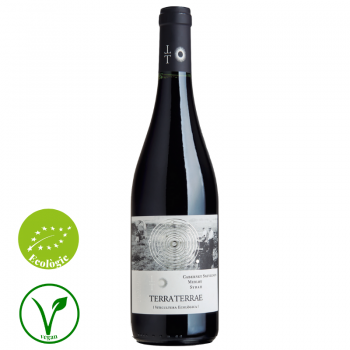 Vi ecològic i vegà elaborat amb Cabernet Sauvignon, Merlot i Syrah. Té una aroma intensa de fruita vermella madura i notes de cacau i regalèssia. En boca és estructurat, equilibrat i amb un final rodó i persistent. Un negre versàtil que acompanya bé tant carns com plats de pasta o formatges curats.